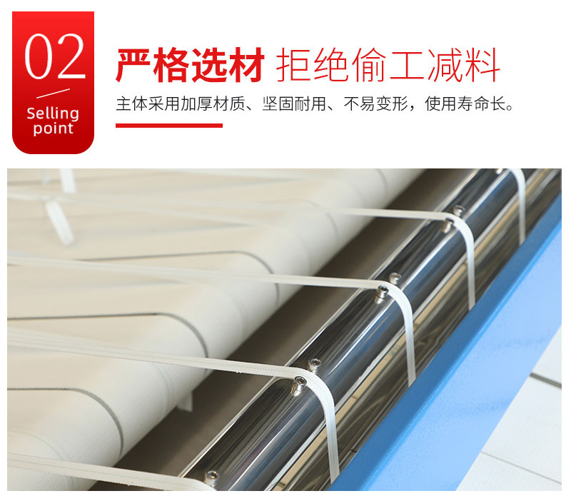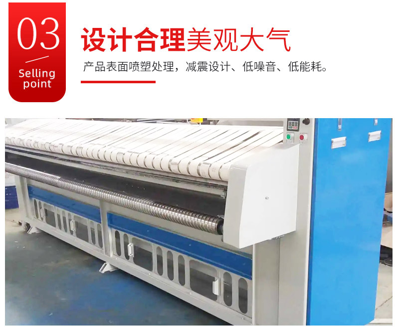 ● 自動(dòng)抖平,行業(yè)正反網(wǎng)面毛別自動(dòng)刷平,對(duì)床單、被套、枕套都能平整送進(jìn)。