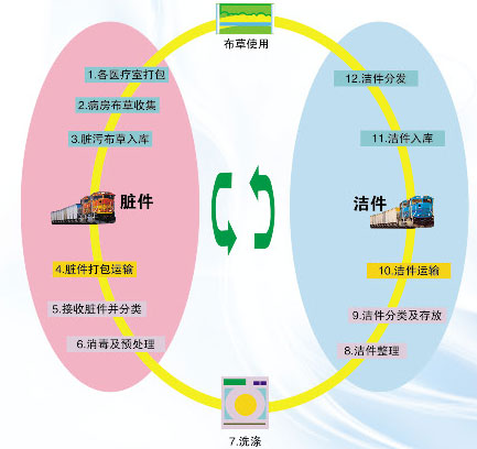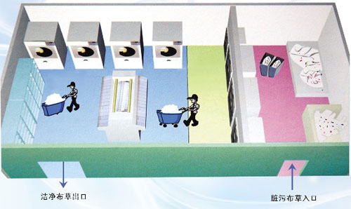 ● 污染區(qū):污染布草的消毒、分類、洗滌、獨立的空間、單獨的操作人員、單獨的洗滌用具、嚴格地控制了污染的傳播;