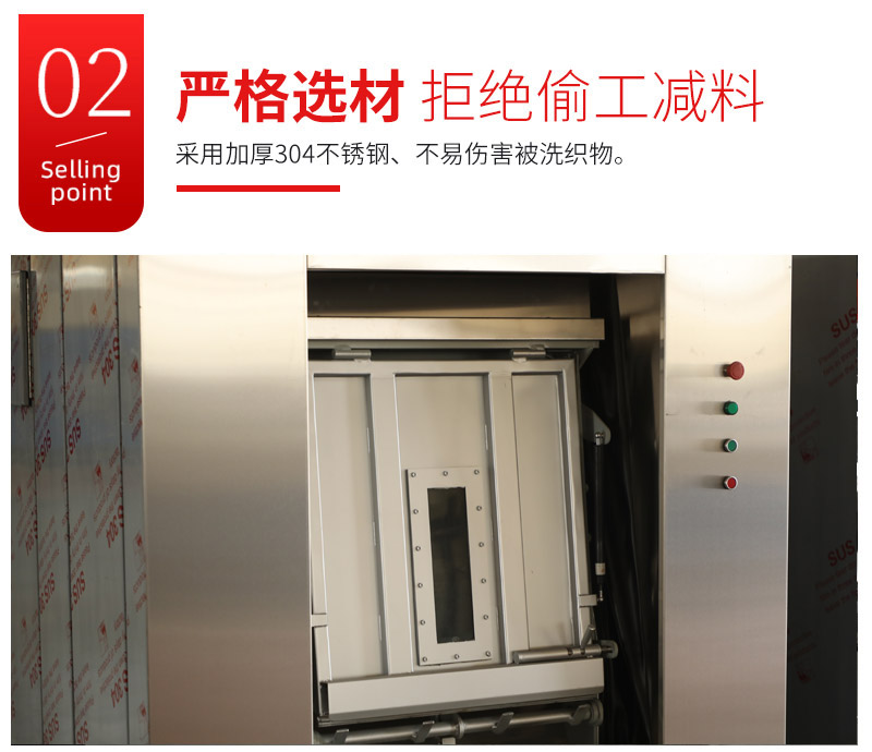● 首先,從設(shè)備上采取衛(wèi)生隔離式洗衣機。背靠背的兩道機門,使污染布草的裝卸和潔凈布草的卸載從不同的兩個門進出,從源頭上避免了交叉感染